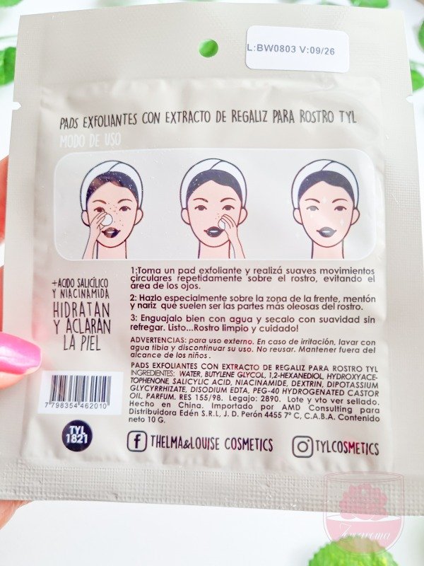 x2 Pads Exfoliantes con extracto de regaliz para rostro TYL +Acido Salicilico y Niacinamida