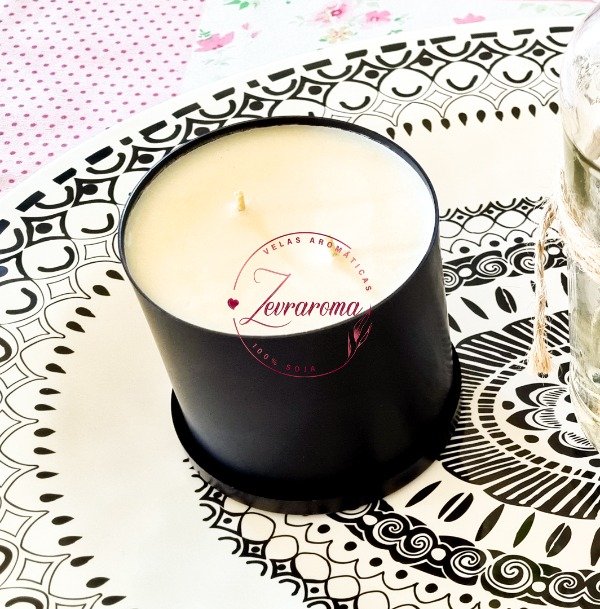Hermosa lata color negro mate super estética con cera de soja de larga duración.