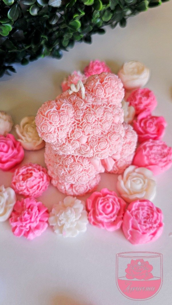 Hermosa Vela de Soja de un Osito floral con moño